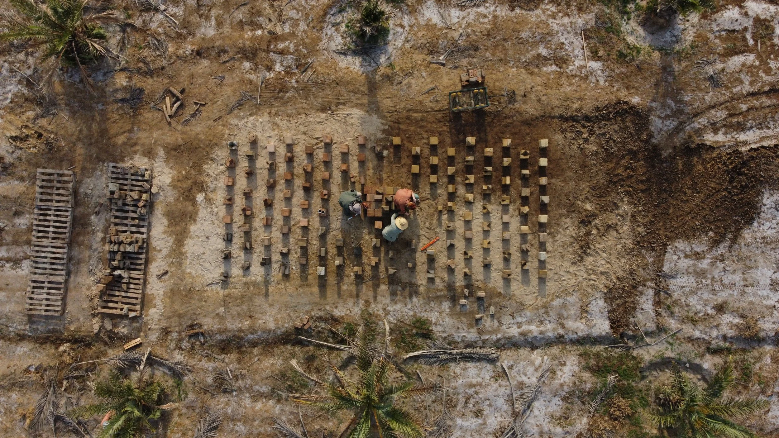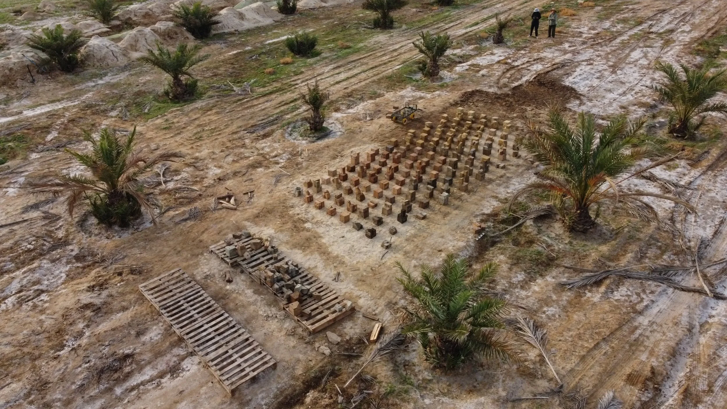 Special attention was given to the full workflow of ramming, drying, and hardening the blocks under Kuwait’s extreme climatic conditions. The process begins with the precise preparation and layering of soil mixtures into compacting molds, followed by manual ramming in successive layers to achieve maximum density and cohesion. Once removed from the mold, the blocks enter a critical drying phase—exposed to ambient air, but shaded to prevent rapid surface cracking caused by direct sun and heat. This phase requires careful monitoring, as the arid environment can accelerate moisture loss unevenly, compromising structural integrity. The final stage, hardening, is a gradual process influenced by both temperature and humidity fluctuations, during which the blocks continue to gain strength and stability over time. This end-to-end workflow was refined through repeated cycles of testing and observation, allowing for adjustments in timing, moisture content, and additive ratios to ensure resilience in Kuwait’s harsh outdoor conditions.